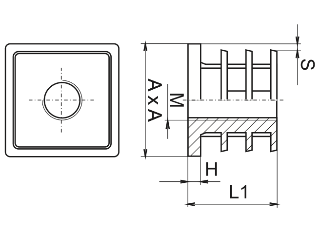 | QAF 50x50 | Černá | PE | M10 | 7 | 50x50 | 37 |