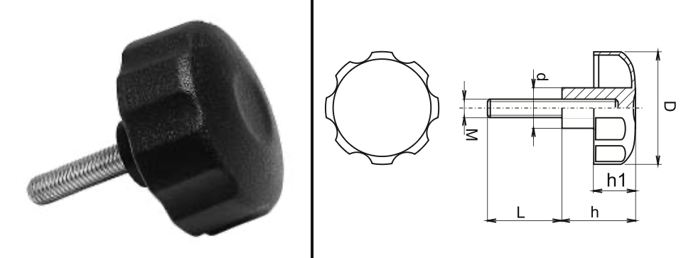 | Objednací číslo | Barva | Materiál | D | H | Výška hlavy | Průměr hlavy | h1 | Závit (M) | Délka (L) | Cena | Objednat |