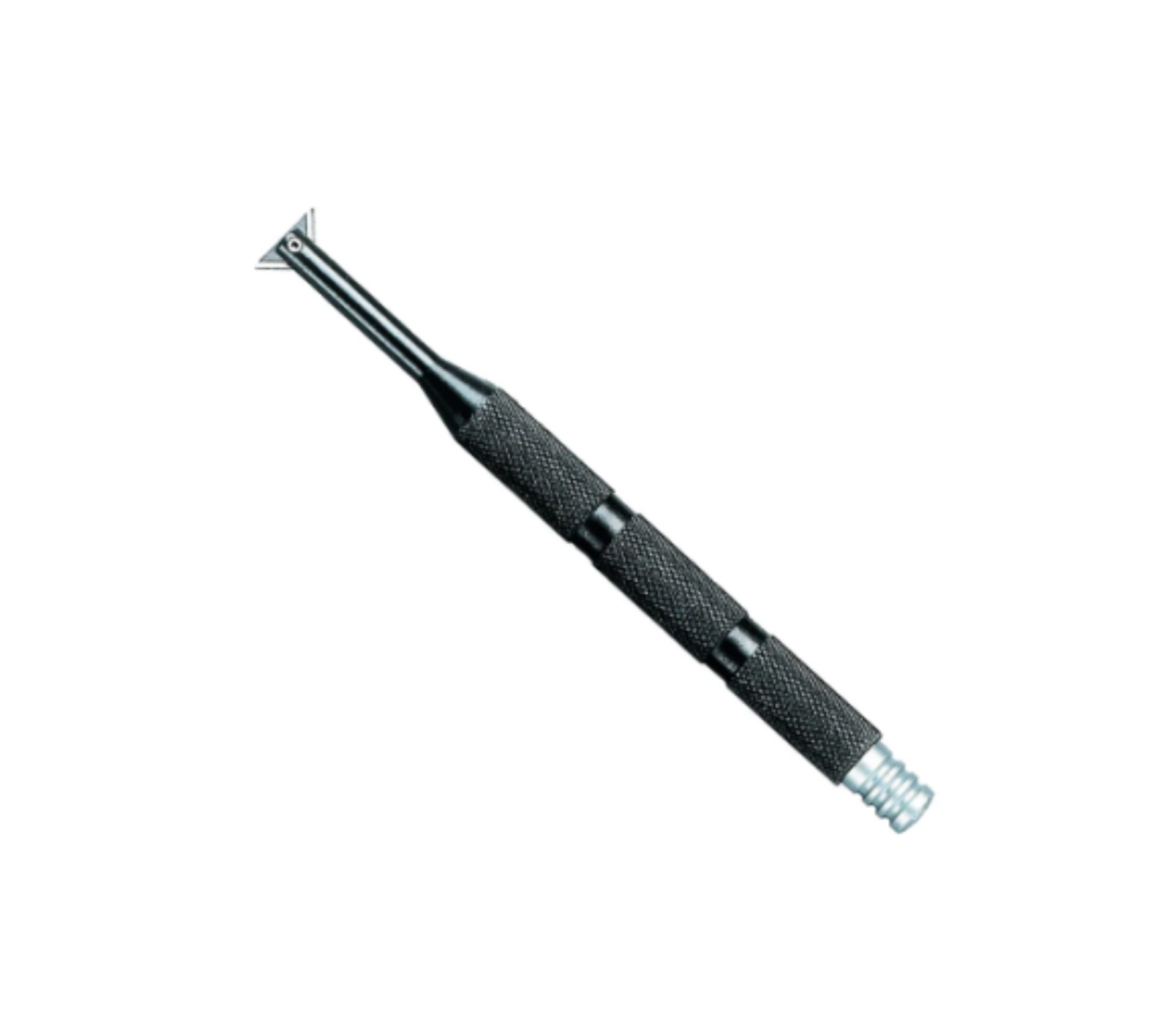 Jak vyměnit nůž: Zatáhněte silně za hliníkový konec rukojeti, až se vysune tenký šestihranný klíč, který pasuje do šroubu držícího nůž.
